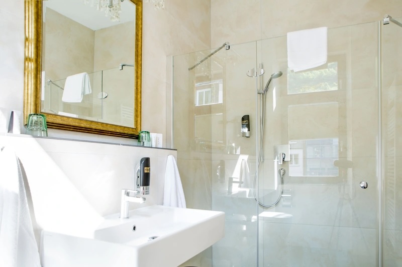 Im eigenem Bad stehen Ihnen hochwertige Wellnessprodukte zur Verfügung.