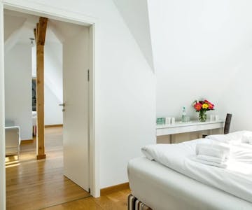 Das Familienzimmer hat getrennten Schlafzimmer. Die beiden Schlafzimmer sind ausgestattet mit je einem King-Size Bett.
